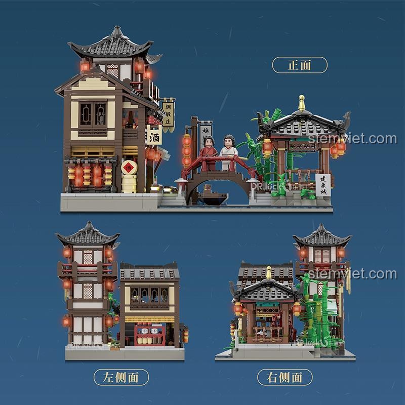 Trải nghiệm lắp ráp bộ Thành Kiến Khang 9018 là một hành trình khám phá đầy thú vị. Sách hướng dẫn chi tiết, in màu rõ nét sẽ giúp bé và gia đình từng bước dựng nên công trình của riêng mình. Quá trình này không chỉ là lắp ghép, mà còn là cảm nhận sự hình thành của một tác phẩm nghệ thuật. Bộ sản phẩm bao gồm 2 minifigure nhân vật chính Chu Phỉ và Tạ Doãn, cho phép bé tái hiện lại những phân cảnh lãng mạn hay những màn đối thoại kinh điển trên cây cầu. Phông nền đi kèm là một điểm nhấn đặc biệt, biến mô hình tĩnh thành một sa bàn 3D sống động, khơi gợi trí tưởng tượng không giới hạn. Các chi tiết như thuyền nhỏ, chum rượu, biển hiệu… đều góp phần làm cho thế giới võ hiệp trở nên chân thực và gần gũi hơn.