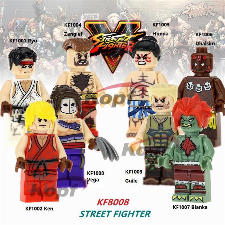 Set đồ chơi Minifigure Street Fighter Kopf KF8008 bao gồm 8 minifigure độc đáo, tái hiện đầy đủ các nhân vật huyền thoại từ tựa game Street Fighter, bao gồm Ryu, Ken, Guile, Zangief, Honda, Dhalsim, Blanka và Vega.