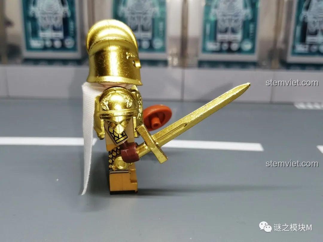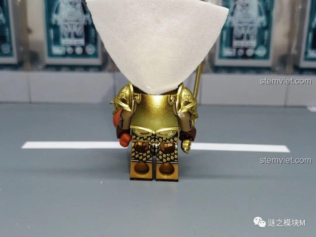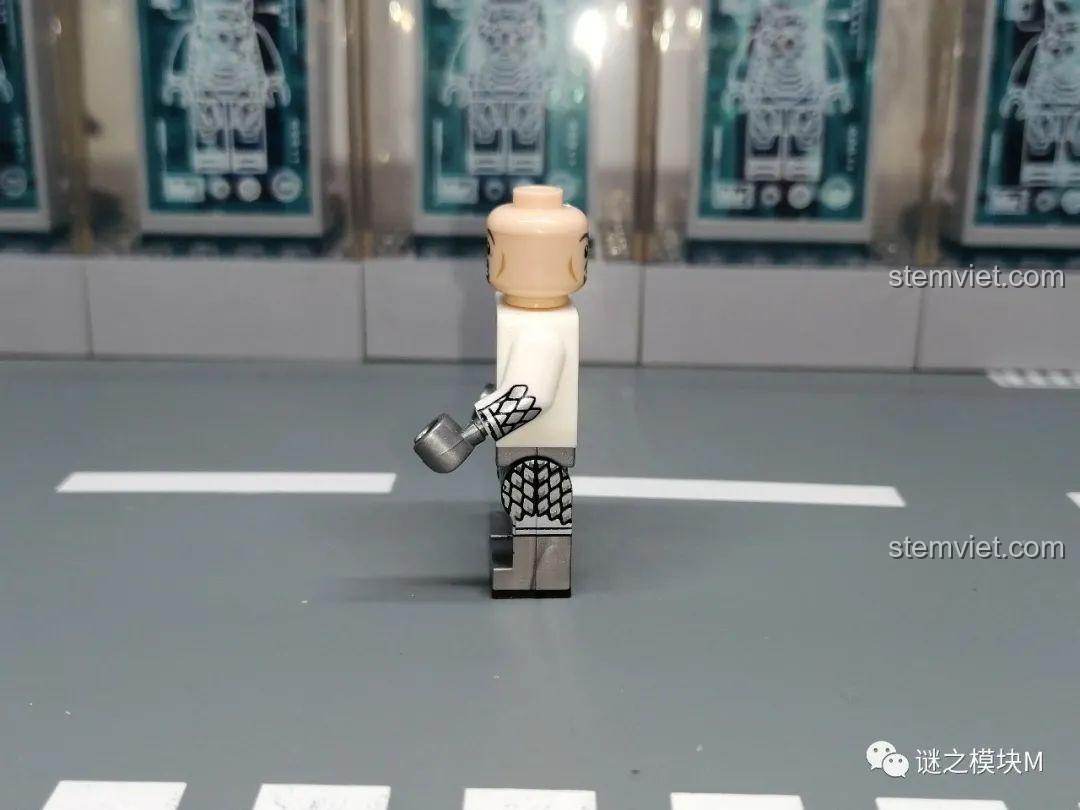 Điều làm nên sự khác biệt của minifigure Koruit XP-132 chính là sự chú trọng đến từng chi tiết nhỏ nhất. Từ bộ giáp bạc lấp lánh đến những đường nét in sắc sảo trên thân và chân, mọi thứ đều được tái hiện một cách chân thực và sống động. Bộ giáp được thiết kế tỉ mỉ, mô phỏng chính xác trang phục của đội Vệ Vương trong phim, với các chi tiết như giáp vai, giáp ngực và mũ trụ đặc trưng.