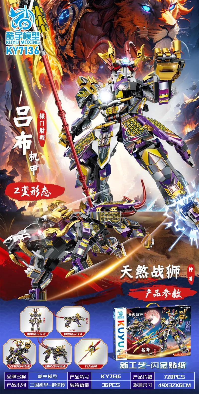 KUYU MOXING KY7136 – Bộ lắp ghép Cơ Giáp Lữ Bố và Thiên Sát Chiến Sư Với Biến Hình 2 Kiểu Có Đèn LED Độc Đáo