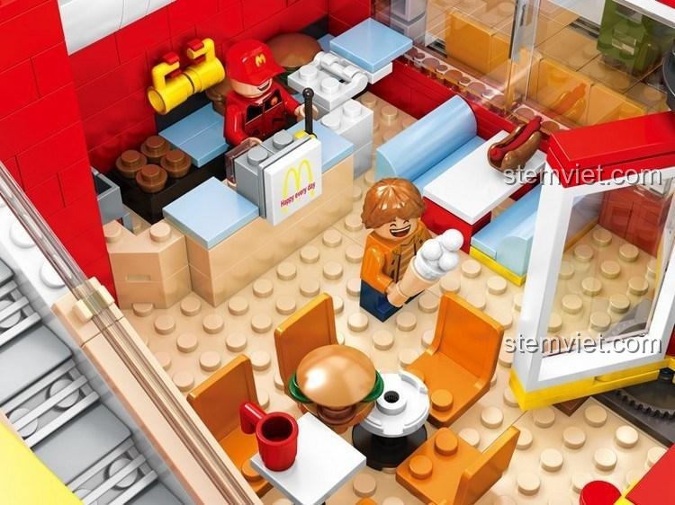 Hẳn trong ký ức tuổi thơ của mỗi chúng ta, hình ảnh mái vòm vàng óng (Golden Arches) và chú hề Ronald McDonald thân thiện luôn gắn liền với những bữa ăn vui vẻ, những món đồ chơi bất ngờ và những khoảnh khắc sum vầy ấm áp. McDonald’s không chỉ là một thương hiệu thức ăn nhanh, đó là một phần của văn hóa đại chúng, một biểu tượng toàn cầu. Giờ đây, Kho đồ chơi trẻ em mang đến cho các mẹ và bé cơ hội không chỉ thưởng thức mà còn tự tay xây dựng nên biểu tượng đó ngay tại nhà với bộ lắp ghép Cửa hàng McDonald’s Sembo SD6901. Đây không chỉ là một món đồ chơi thông thường, mà là một công cụ tuyệt vời để tái hiện lại không khí nhộn nhịp, vui tươi của một nhà hàng McDonald’s thực thụ. Hãy cùng con bạn, những cô bé, cậu bé 6 tuổi đầy tò mò, bắt đầu cuộc phiêu lưu kiến tạo, biến những viên gạch nhỏ thành một công trình kiến trúc quen thuộc và đầy màu sắc. Sản phẩm này sẽ là cầu nối tuyệt vời để cha mẹ kể cho con nghe về những kỷ niệm, đồng thời tạo ra những kỷ niệm mới thật đáng nhớ.