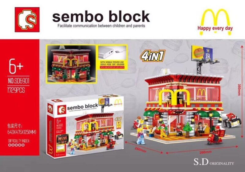 Mẹ có con 6 tuổi có biết không, McDonald’s không chỉ là một nhà hàng, đó là cả một thế giới của niềm vui, những bữa ăn hạnh phúc và những kỷ niệm tuổi thơ. Từ chiếc bánh hamburger thơm lừng đến món khoai tây chiên giòn rụm, thương hiệu này đã trở thành một biểu tượng văn hóa toàn cầu. Giờ đây, thay vì chỉ đến ăn, bé yêu nhà mình có thể tự tay xây dựng, quản lý và sáng tạo nên câu chuyện McDonald’s của riêng mình với bộ lắp ráp Cửa hàng McDonald’s Sembo Block SD6901. Đây không chỉ là một món đồ chơi, mà là một công cụ tuyệt vời để bé tái hiện lại những trải nghiệm vui vẻ, biến những ý tưởng trong đầu thành một mô hình sống động, chi tiết và đầy màu sắc. Hãy cùng bé bước vào cuộc phiêu lưu kiến tạo đầy thú vị này nhé!