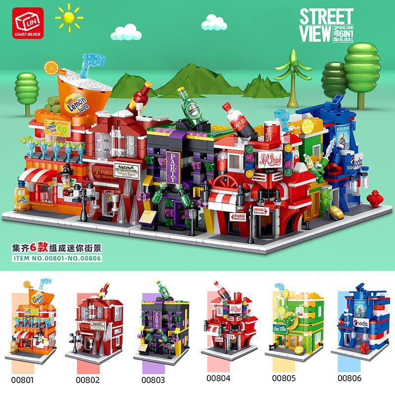 Mô hình 00806 trong bộ Phố ẩm thực mini ZHEGAO là cửa hàng Sprite và Feichang Cola, mang đến một không gian giải khát đầy màu sắc và sống động cho khu phố của bé.