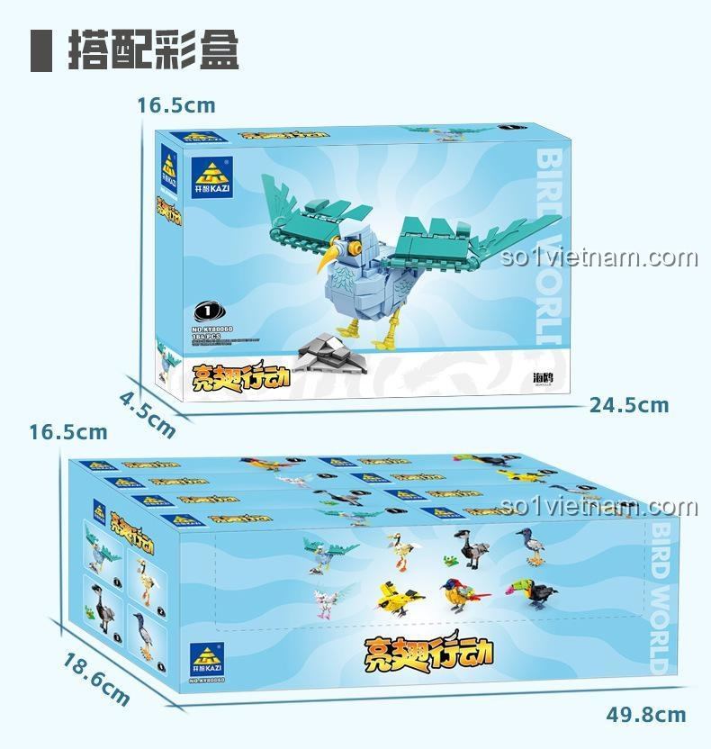 Từ thuở xa xưa, chim đã là biểu tượng của sự tự do, vẻ đẹp và trí tuệ trong văn hóa nhân loại. Chúng là những sinh vật tuyệt vời, xuất hiện trên Trái Đất từ kỷ Jura muộn, khoảng 150 triệu năm trước, với khả năng bay lượn trên bầu trời, di cư hàng ngàn dặm và xây tổ một cách khéo léo. Mỗi loài chim đều mang một câu chuyện riêng, một đặc điểm độc đáo. Bộ lắp ghép KAZI KY80060 này được lấy cảm hứng từ sự đa dạng và kỳ diệu đó, mang đến cho bé cơ hội tái hiện lại 8 loài chim khác nhau, từ chú Hải Âu dũng mãnh trên biển cả, Sếu Đầu Đỏ thanh tao, Ngỗng Biển hiền lành, Diệc Đêm bí ẩn, Quạ thông minh, Hoàng Yến rực rỡ, Chim Hút Mật Lửa nhỏ bé nhưng đầy màu sắc, cho đến Toucan với chiếc mỏ khổng lồ đặc trưng. Đây là một hành trình khám phá đầy thú vị, giúp bé hiểu hơn về thế giới tự nhiên và khơi gợi tình yêu động vật.