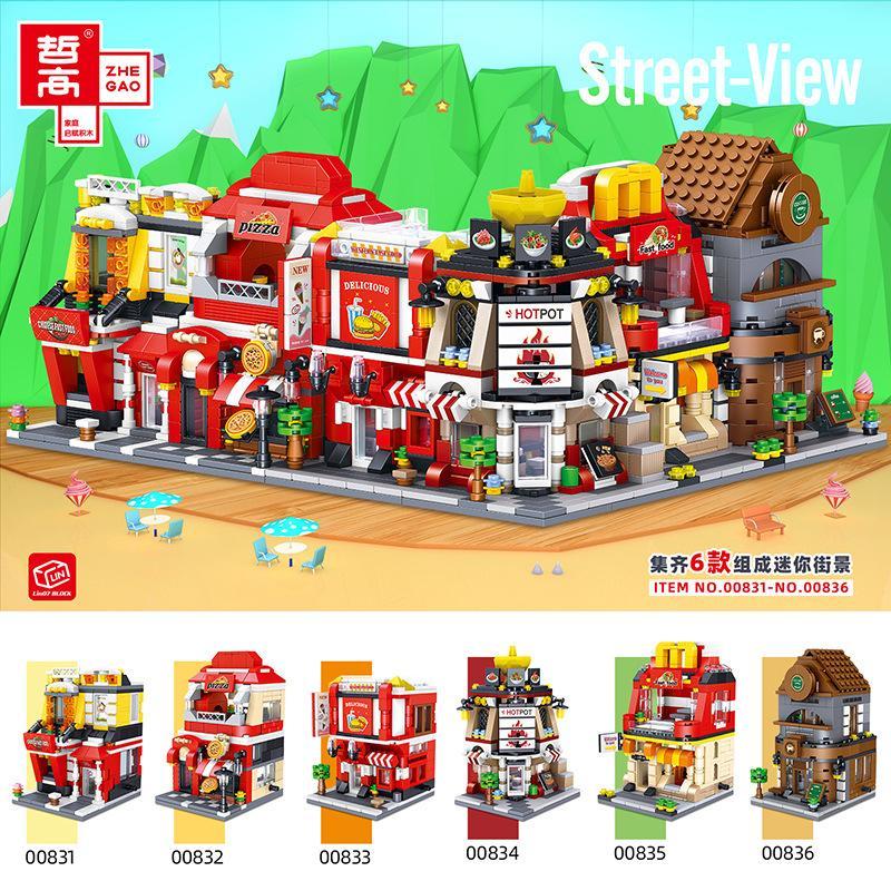 Toàn bộ set Zhegao 00831-00836 bao gồm tổng cộng 2099 mảnh ghép, được chia thành 6 hộp nhỏ, mỗi hộp là một cửa hàng riêng biệt. Số lượng mảnh ghép lớn đảm bảo trải nghiệm lắp ráp phong phú và kéo dài.
