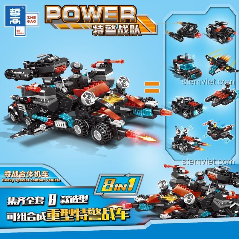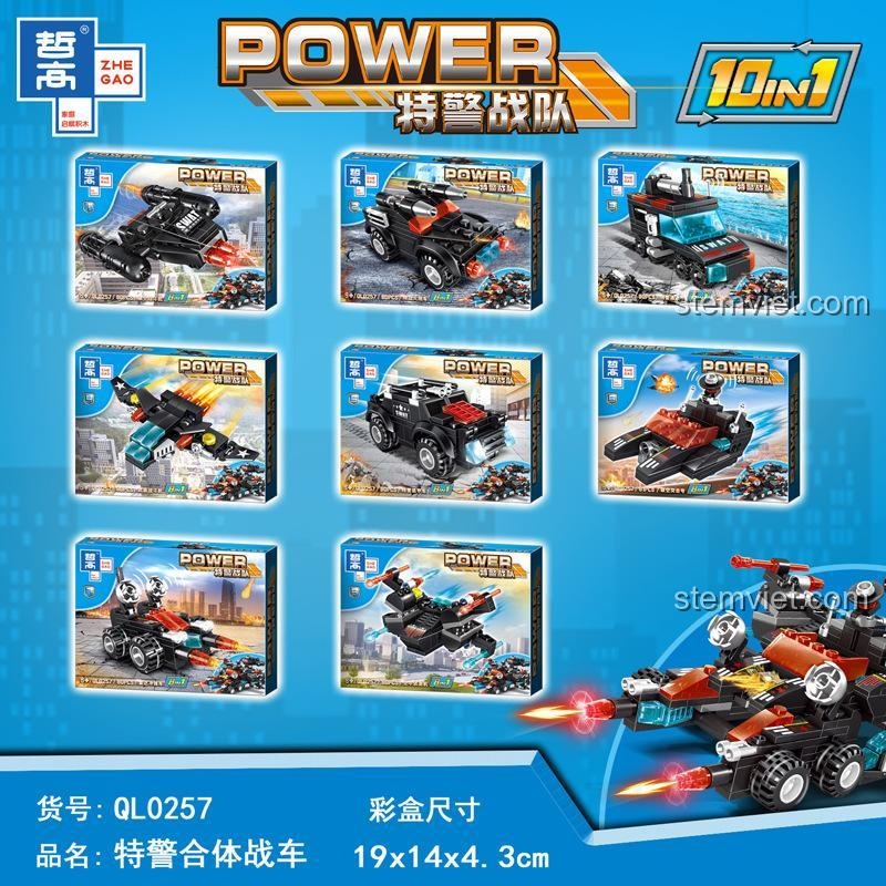 Lắp Ráp 10 Kiểu Xe Chiến Đấu Hợp Thể Đội Đặc Nhiệm SWAT Sức Mạnh Hợp Thể Cùng ZHEGAO QL0257!