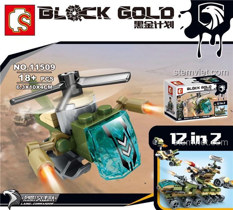 Giải phóng sức sáng tạo của bé với bộ lắp ráp SEMBO 11509 Black Gold – một bộ sưu tập độc đáo cho phép bé tạo ra không chỉ 1, mà đến 14 mô hình khác nhau! Từ 12 chiếc xe quân sự mini siêu ngầu như xe tăng, trực thăng, máy bay… bé có thể hợp thể chúng lại để tạo thành 2 robot chiến đấu khổng lồ đầy uy lực. Với 206 mảnh ghép chất lượng cao, tương thích hoàn toàn với LEGO®, đây là lựa chọn thay thế tiết kiệm cho LEGO® mà vẫn đảm bảo những giờ phút vui chơi trí tuệ và hấp dẫn. Một món quà hoàn hảo, vừa học vừa chơi, giúp bé phát triển tư duy logic và sự khéo léo.