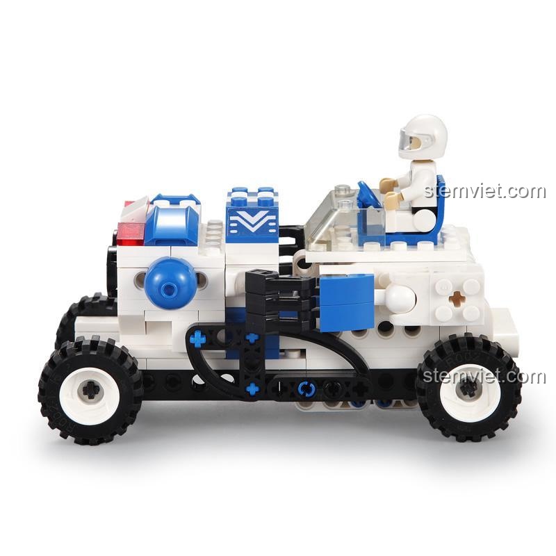 - Dạng Xe Đua Địa Hình: Chỉ với vài bước biến đổi đơn giản, Bobby có thể ‘biến hình’ thành một chiếc xe đua hầm hố. Chiếc xe được trang bị bốn bánh xe lớn với lốp cao su có rãnh sâu, sẵn sàng chinh phục mọi địa hình. Đặc biệt, xe còn có một chỗ ngồi cho minifigure tay đua đi kèm, biến cuộc chơi trở nên sống động và chân thực hơn bao giờ hết.
