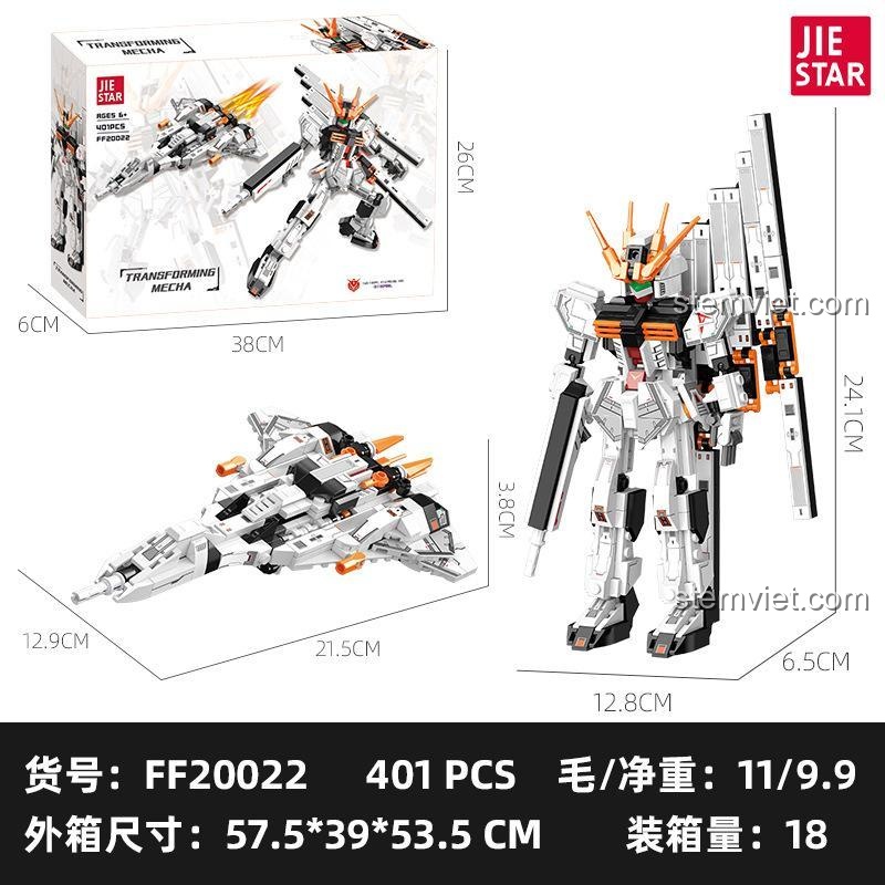 Điểm đặc biệt của bộ FF20022 là khả năng biến hình 2 trong 1. Ngoài mô hình Robot Gundam Nu, bé có thể tháo ra và lắp ráp lại thành một mô hình chiến đấu cơ cực ngầu, mang lại trải nghiệm chơi đa dạng và không bị nhàm chán.