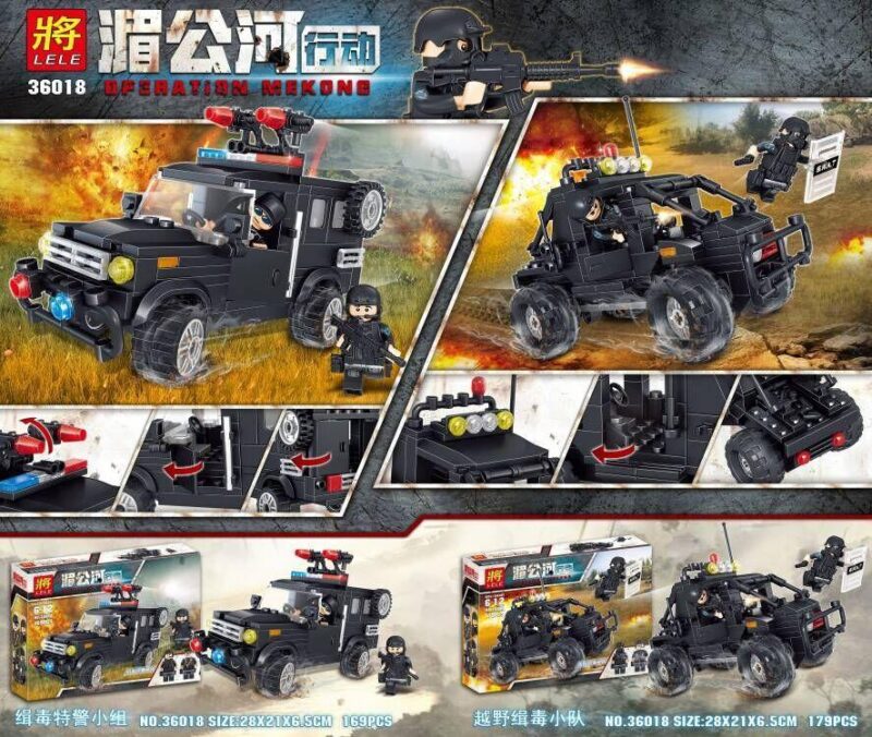 Lắp Ráp 2 Kiểu Xe Jeep Đặc Nhiệm Chống Ma Túy Chiến Dịch Mekong Hành Động Chống Ma Túy Cùng LELE 36018-1 (348 mảnh)!