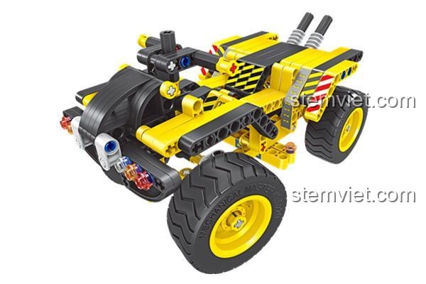 • Chức năng Xe Địa Hình: Mô hình này tập trung vào sự linh hoạt. Bé có thể điều khiển hướng di chuyển của xe thông qua một núm vặn kết nối với hệ thống lái của hai bánh trước. Cảm giác được tự tay “bẻ lái” chiếc xe mình vừa lắp ráp sẽ khiến bé vô cùng thích thú.