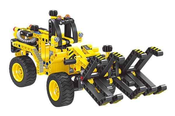 • Chức năng Xe Nâng: Mô hình được trang bị một cơ cấu nâng hạ và kẹp vật thể vô cùng thú vị. Bé có thể xoay các núm vặn được bố trí thông minh trên thân xe để điều khiển càng kẹp nâng lên, hạ xuống và đóng mở. Tính năng này không chỉ mang lại những giờ chơi vui vẻ mà còn giúp bé hiểu được nguyên lý hoạt động của đòn bẩy và hệ thống bánh răng một cách trực quan.
