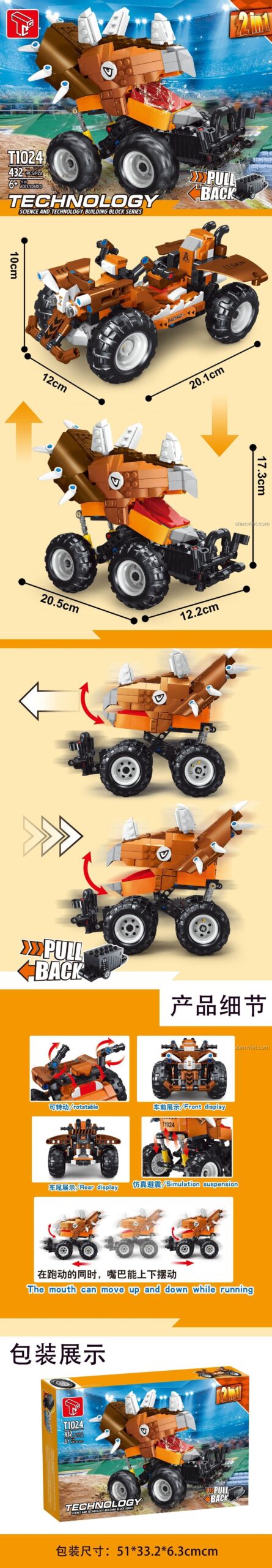 Lắp Ráp 2 Kiểu Xe Quái Vật Khủng Long Ba Sừng Triceratops Quái Thú Địa Hình Cùng TEC Creators T1024 (432 Mảnh Ghép)!