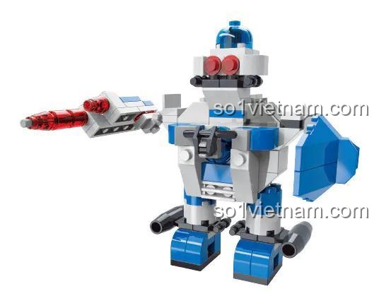 - Robot Xâm Lược: Một cỗ máy chiến đấu khổng lồ, vững chãi với gam màu xanh, xám và trắng chủ đạo. Robot được trang bị vũ khí hạng nặng, sẵn sàng càn quét mọi kẻ thù cản đường. Các khớp nối linh hoạt cho phép bé tạo ra nhiều tư thế chiến đấu oai hùng.