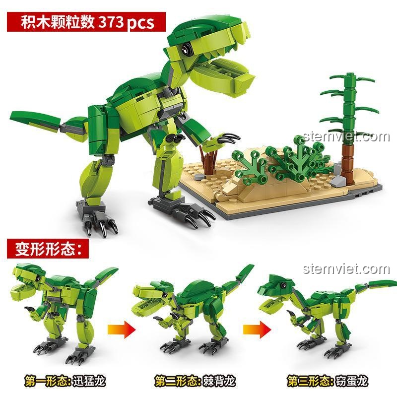 Điểm đặc biệt của đồ chơi mô hình 20016 chính là thiết kế cực kỳ thông minh và linh hoạt. Từ cùng một bộ 373 mảnh ghép, bé có thể biến hóa tài tình để tạo ra 3 loài khủng long hoàn toàn khác biệt về hình dáng và đặc tính.