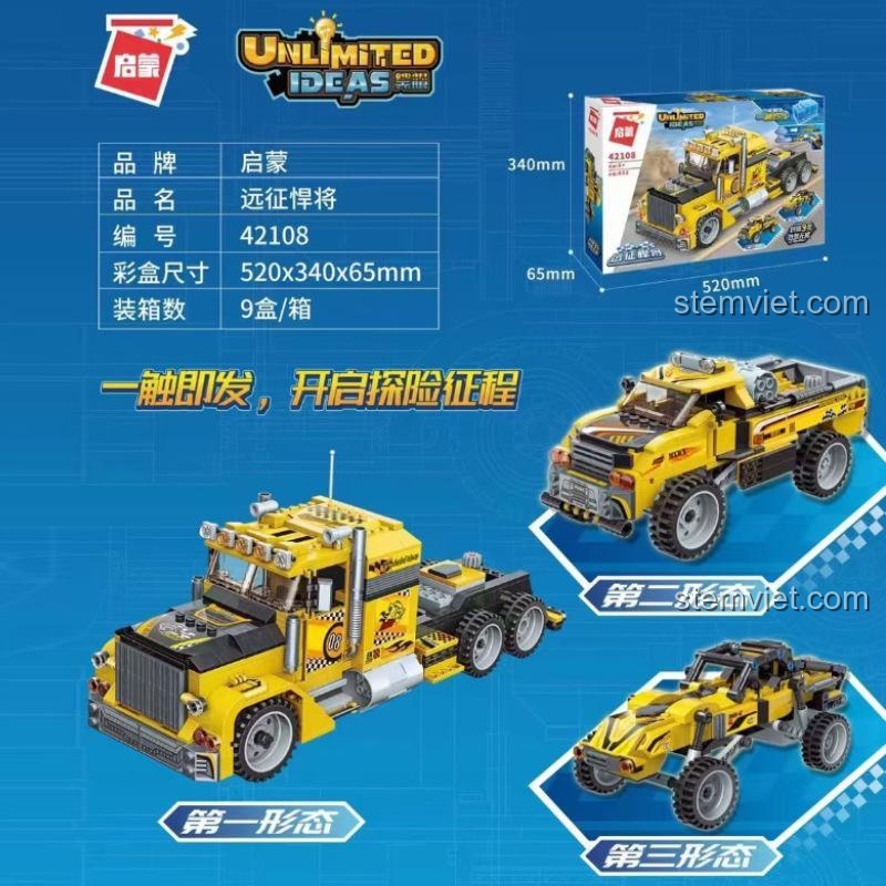 Chào các mẹ, có phải mẹ đang tìm kiếm một món đồ chơi vừa giúp con trai 6 tuổi của mình giải trí, vừa có thể rèn luyện trí thông minh và sự khéo léo không? Hãy tạm gác lại những thiết bị điện tử và cùng khám phá bộ đồ chơi QMAN 42108 – một thế giới sáng tạo không giới hạn, nơi bé không chỉ lắp ráp mà còn được phiêu lưu cùng những câu chuyện do chính mình tạo ra. Lấy cảm hứng từ tinh thần ‘Unlimited Ideas’ – Ý tưởng không giới hạn, bộ sản phẩm này không chỉ là một mô hình, mà là ba cuộc phiêu lưu khác nhau đang chờ bé khám phá. Từ một chiếc xe tải dã chiến mạnh mẽ, bé có thể biến hóa thành xe bán tải địa hình năng động hay một chiếc xe đua buggy tốc độ. Mỗi lần thay đổi là một lần tư duy của bé được thử thách và bay cao, giúp con hiểu rằng từ những mảnh ghép quen thuộc, bé hoàn toàn có thể tạo ra những điều mới mẻ và kỳ diệu.