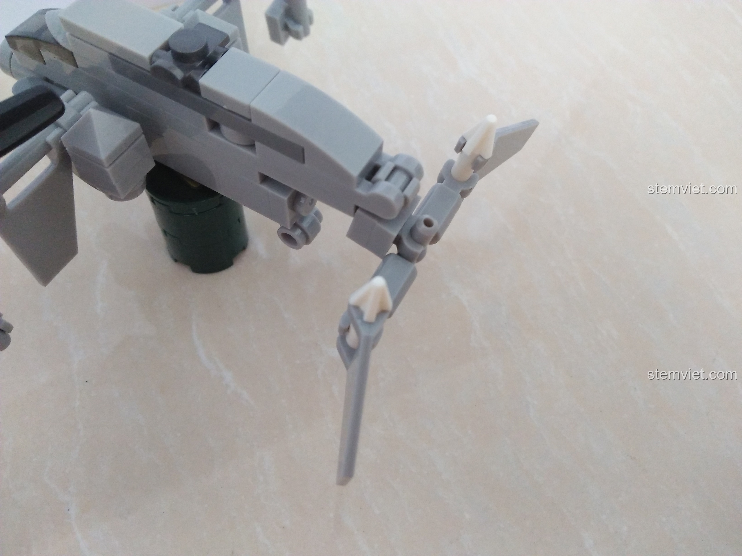 Nhưng điều kỳ diệu chưa dừng lại ở đó! Khi kết hợp sức mạnh của cả ba, bé sẽ tạo ra mô hình thứ tư: một Máy bay vận tải hợp thể siêu ngầu. Với sải cánh rộng, hai động cơ cánh quạt lớn và phần đuôi linh hoạt, mô hình hợp thể này trông như bước ra từ một bộ phim khoa học viễn tưởng, sẵn sàng cho những nhiệm vụ vận chuyển quan trọng. Toàn bộ phi đội khoác lên mình màu xám quân sự chủ đạo, mang lại vẻ ngoài chuyên nghiệp và mạnh mẽ.