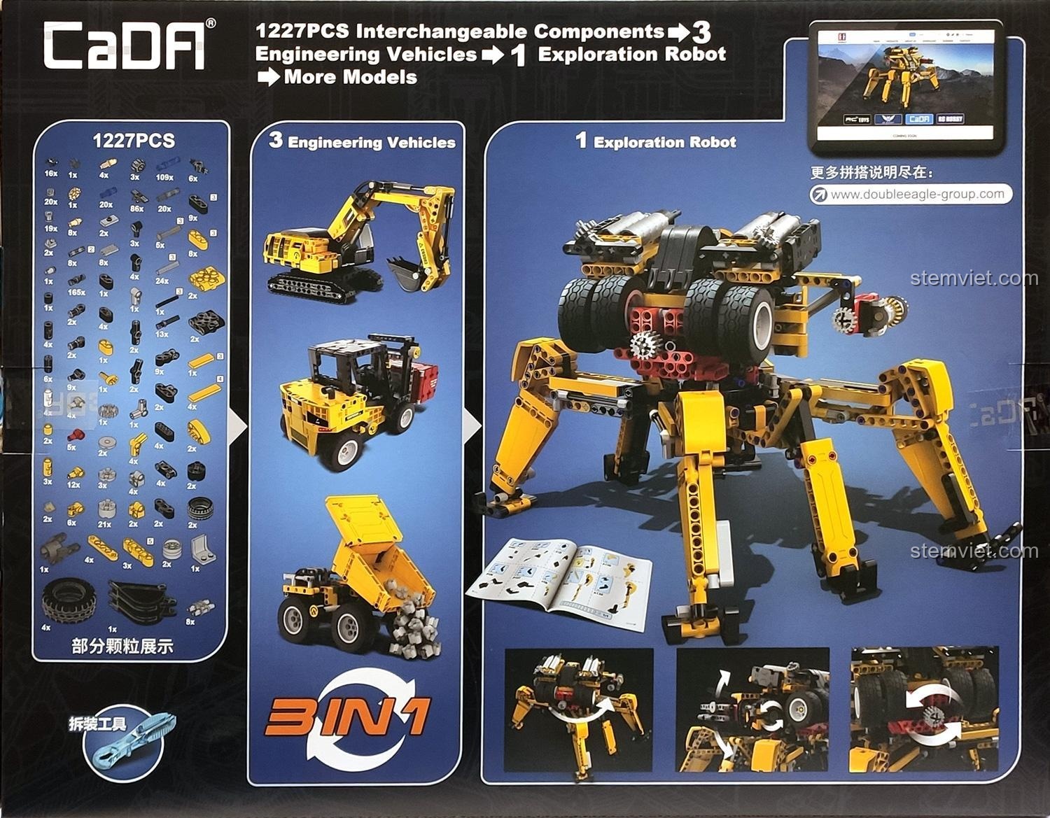 Không chỉ đẹp về hình thức, đồ chơi lắp ghép Xe Xúc Lật và các mô hình khác trong bộ C91064 còn sở hữu những tính năng vận hành ấn tượng. Được thiết kế theo chuẩn Technic, bộ sản phẩm mang đến những trải nghiệm cơ khí chân thực. Bé sẽ được học về các cơ cấu truyền động, bánh răng, trục khuỷu khi lắp ráp và vận hành các chức năng của từng mô hình. Robot có thể di chuyển 6 chân một cách nhịp nhàng, các xe công trình có thể nâng ben, cử động gầu xúc, xoay cabin… Hơn thế nữa, bộ sản phẩm còn có thể nâng cấp với bộ động cơ và điều khiển từ xa của CaDA (được bán riêng), biến mô hình tĩnh thành một cỗ máy RC thực thụ, mang lại niềm vui bất tận. Khả năng bắn đạn nhựa từ các nòng súng trên robot cũng là một điểm nhấn thú vị, cho phép bé tái hiện những trận chiến gay cấn.