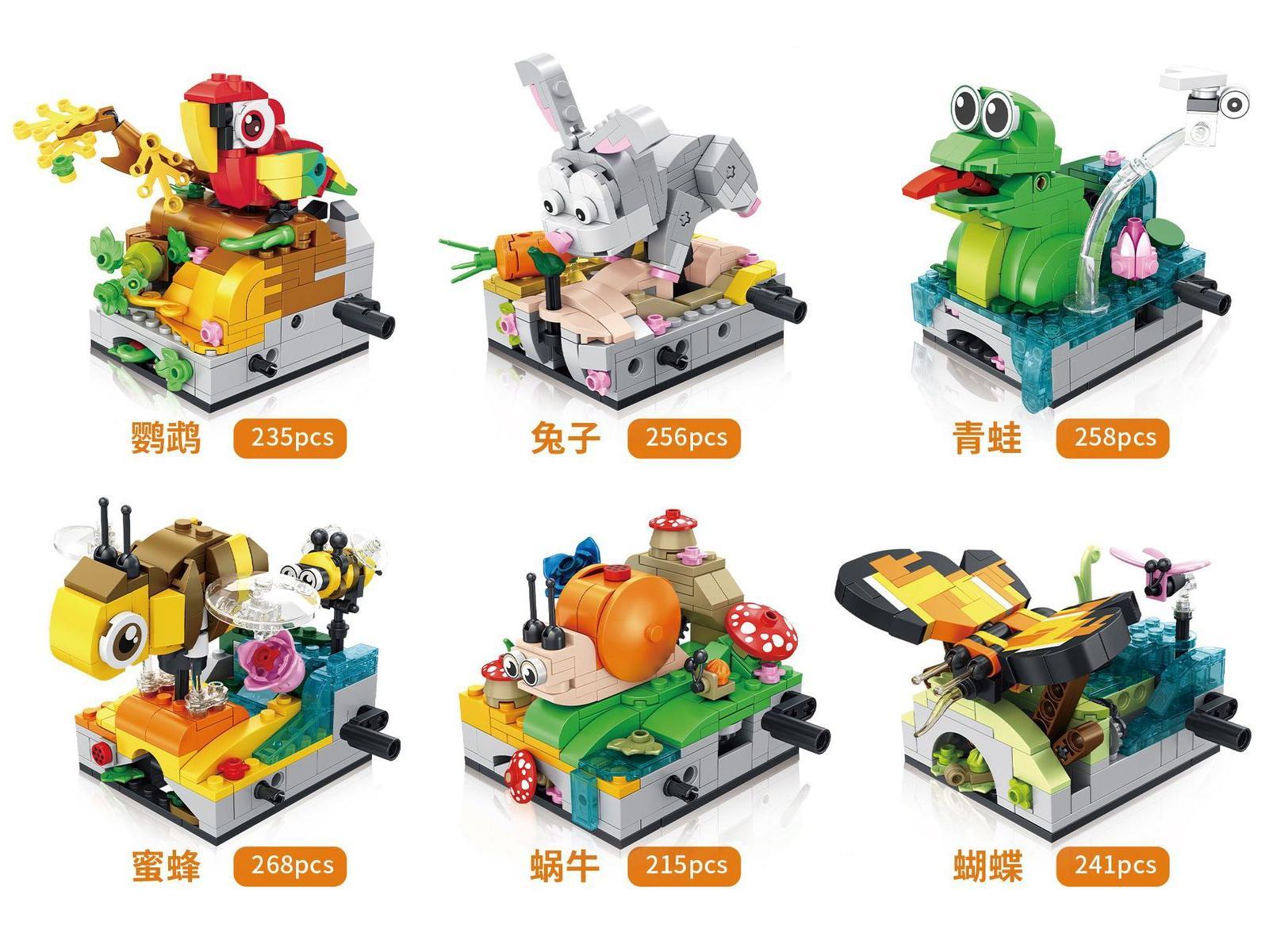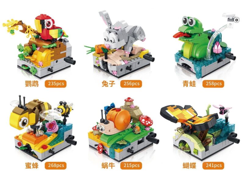 Bộ đồ chơi lắp ráp Forange Block FC8601 này có thể lắp được 6 kiểu mô hình động vật khác nhau, bao gồm Vẹt, Thỏ, Ếch, Ong, Ốc sên và Bướm. Mỗi mô hình đều có thiết kế độc đáo và cơ chế chuyển động riêng biệt, mang lại sự đa dạng trong trải nghiệm chơi.