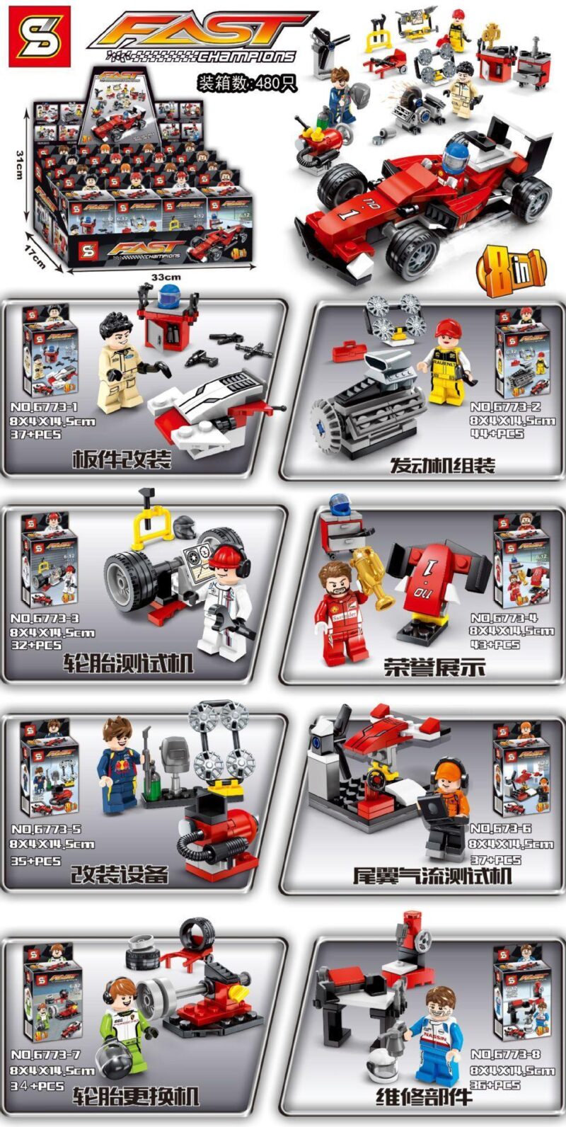 Điểm đặc biệt nhất của bộ xếp hình SY6773 chính là thiết kế 9-trong-1 vô cùng thông minh và sáng tạo. Bộ sản phẩm bao gồm 8 hộp nhỏ, mỗi hộp là một cảnh riêng biệt trong khu vực kỹ thuật của một đội đua F1 chuyên nghiệp, đi kèm là 8 nhân vật với vai trò khác nhau: