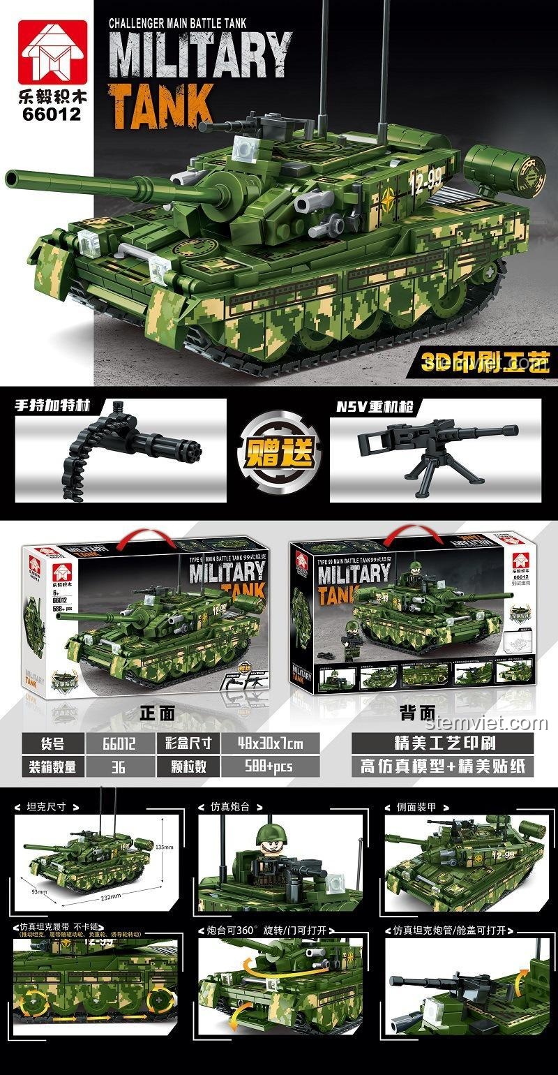 乐毅积木 66012: Bộ Đồ Chơi Lắp Ghép Xe Tăng Chiến Đấu Challenger 99式 (588 Mảnh) – Mạnh mẽ Uy lực