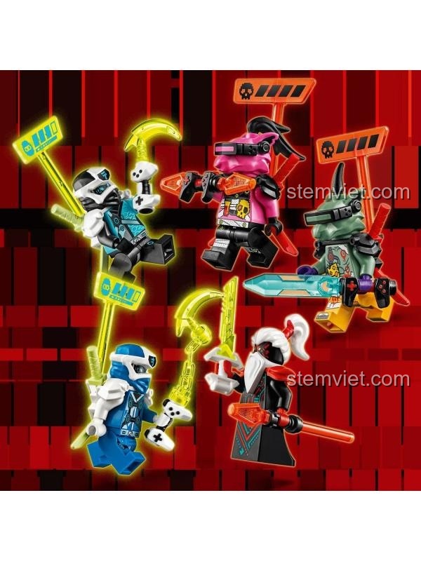 Bộ sản phẩm này vô cùng giá trị khi đi kèm tới 5 minifigures độc quyền từ mùa phim Prime Empire, bao gồm 2 ninja là Digi Jay, Digi Nya và 3 nhân vật phản diện là Unagami, Richie, và Hausner, cùng đầy đủ vũ khí và phụ kiện.
