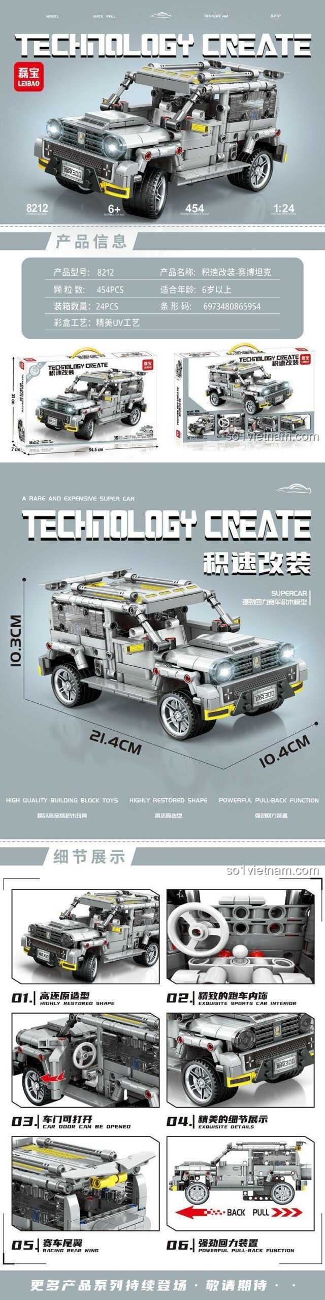 Khi nhắc đến đồ chơi lắp ráp LEIBAO, đặc biệt là mã số 8212, chúng ta không thể không trầm trồ trước sự tỉ mỉ và chân thực trong từng chi tiết. Mô hình Xe SUV Tank 300 Cyber này được tái hiện một cách xuất sắc, mang đến một phiên bản thu nhỏ hoàn hảo của chiếc xe địa hình đình đám.