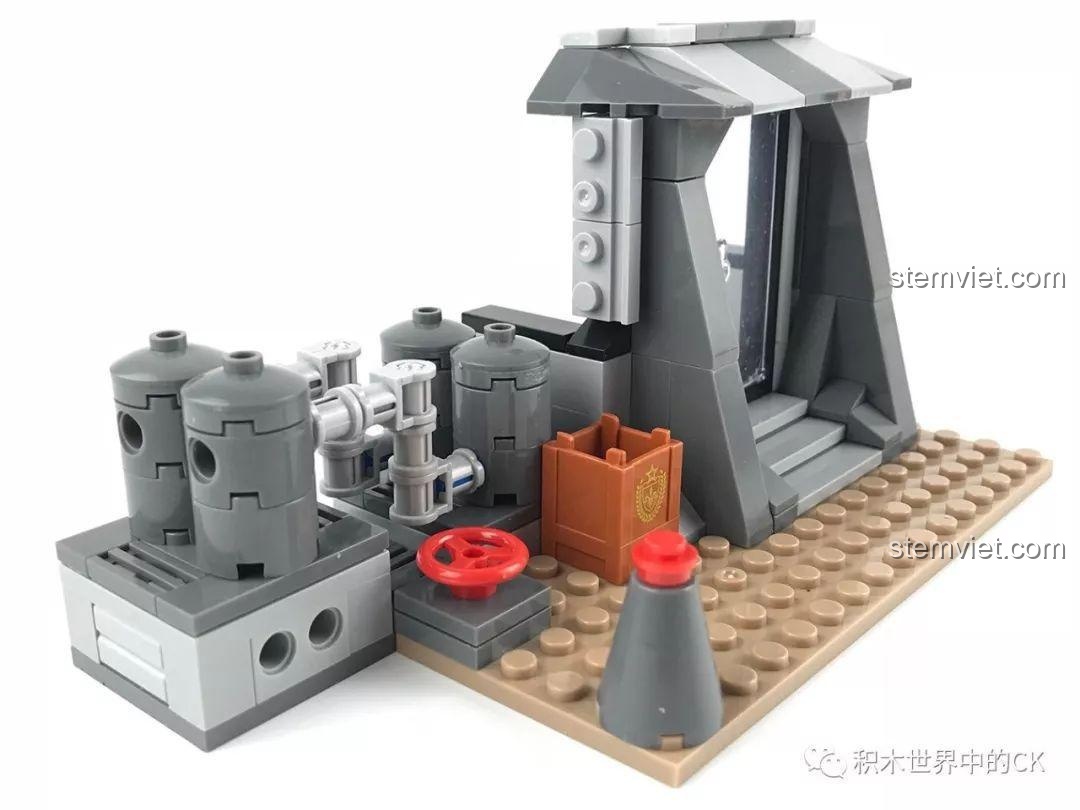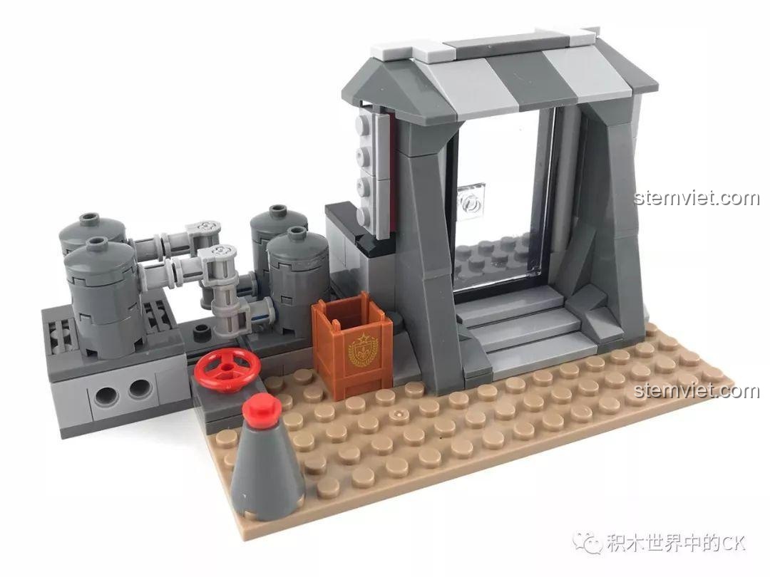 Điểm đặc biệt của đồ chơi mô hình LELE 36029 chính là thiết kế thông minh gồm 2 sa bàn riêng biệt nhưng có thể kết hợp hoàn hảo thành một căn cứ chiến đấu rộng lớn. Một bên là khu nhà kho kiên cố với các thùng hàng, nơi ẩn nấp lý tưởng và một tháp nước cao sừng sững – vị trí hoàn hảo cho các tay bắn tỉa. Bên còn lại là một trạm kiểm soát với hệ thống đường ống phức tạp và một cổng vào vững chãi, tạo nên một điểm nóng giao tranh đầy thử thách. Bốn minifigures đi kèm được trang bị tận răng, từ anh lính đặc nhiệm ngầuầu trong bộ giáp kín mít, anh chàng râu quai nón dày dạn kinh nghiệm, cho đến nữ chiến binh quả cảm, tất cả đều sẵn sàng cho trận chiến “chạy bo” cuối cùng. Các chi tiết nhỏ như chảo, súng ống, bình cứu hỏa đều được chăm chút tỉ mỉ, mang lại cảm giác chân thực nhất cho chiến trường thu nhỏ của bé.