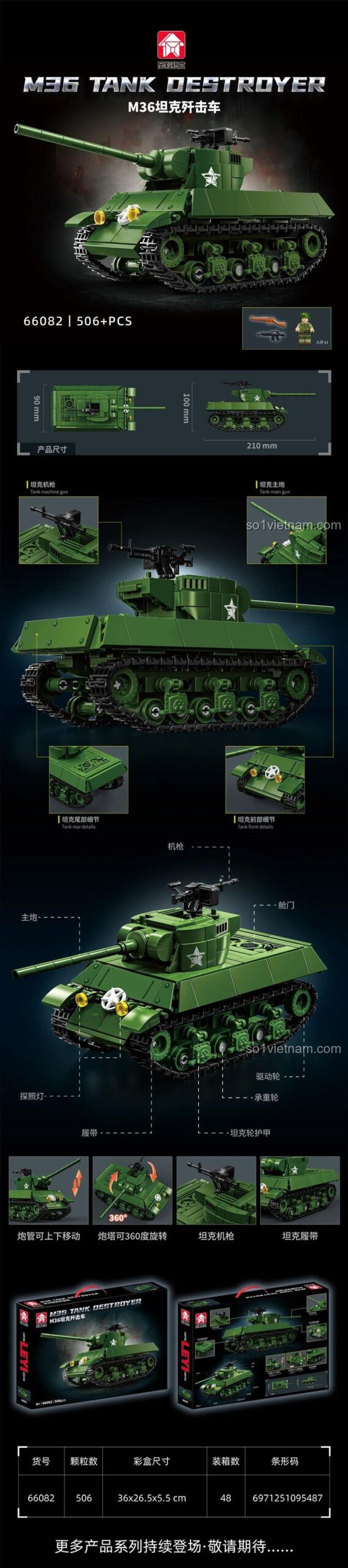 Chào mừng các chiến binh nhí và những người yêu thích lịch sử quân sự đến với thế giới của bộ lắp ráp xe tăng diệt tăng M36 Jackson LEVI 66082! Với 506 mảnh ghép chi tiết, đây không chỉ là một món đồ chơi, mà còn là một cánh cửa mở ra thế giới của những trận chiến lịch sử, nơi trí tuệ và sự khéo léo của bé được thử thách.