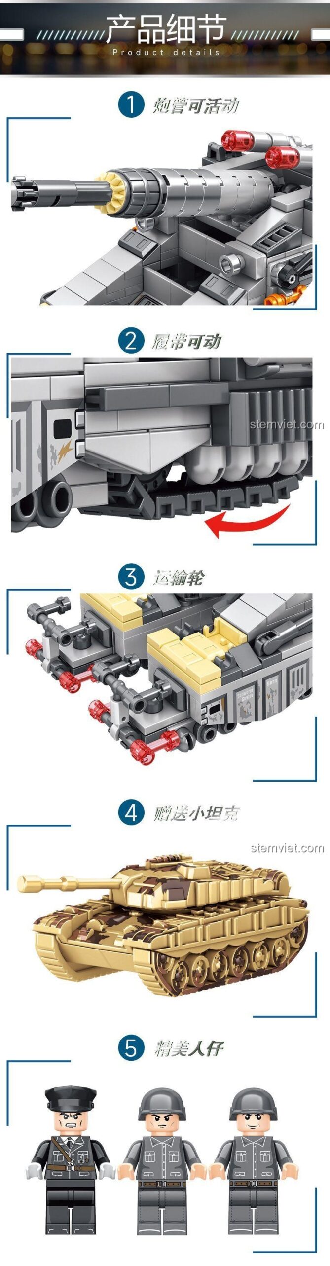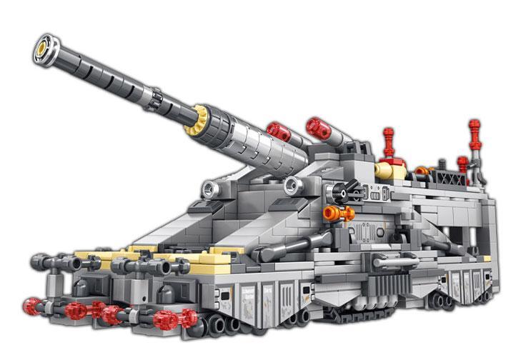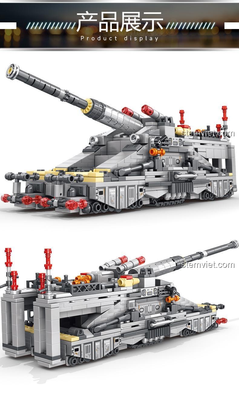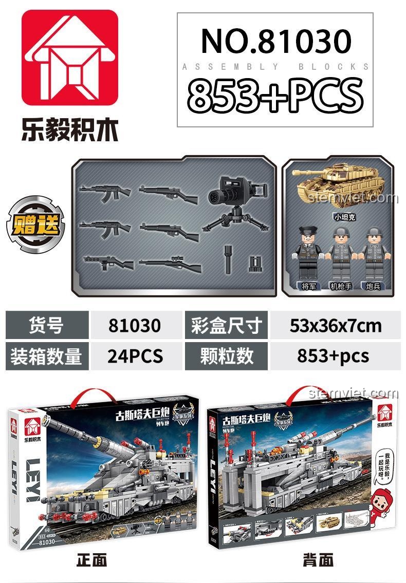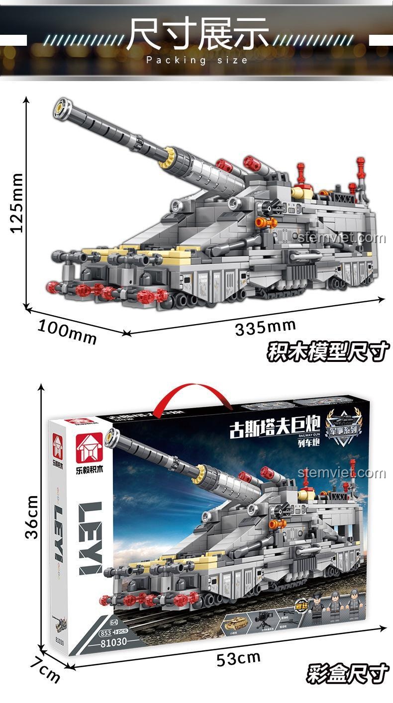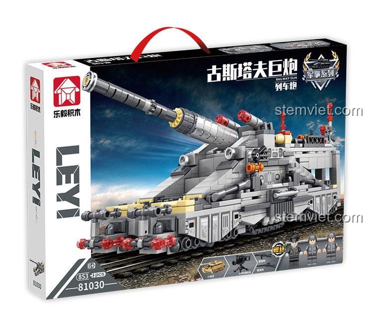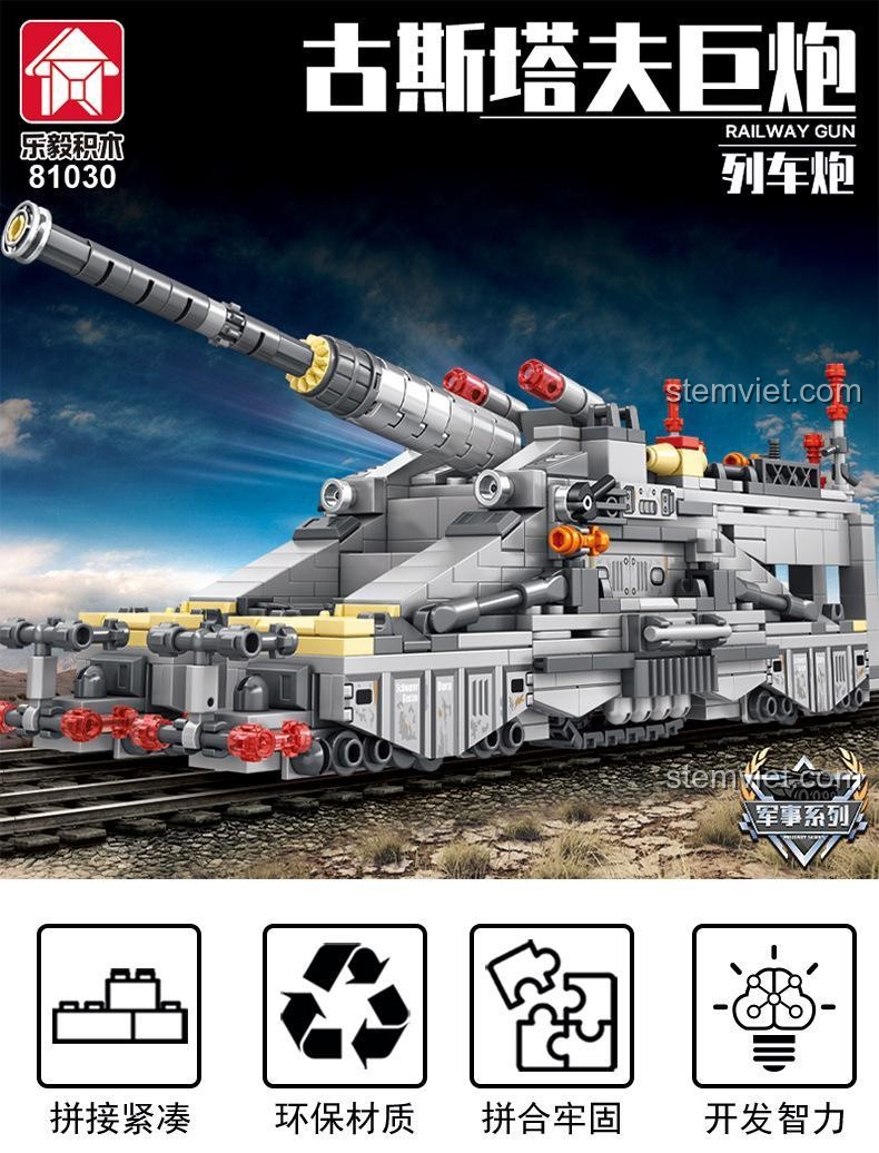 LEYI 81030 – Đồ chơi mô hình Pháo đường sắt Gustav Với Quà Tặng Kèm 3 Lính và Xe Tăng Mini