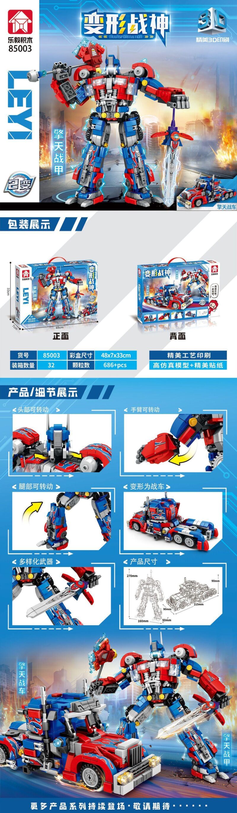 🤖 Khám Phá LEYI 85003 Robot Biến Hình Optimus Prime: Huyền Thoại Tái Sinh Trong Tầm Tay Bé! 🚀