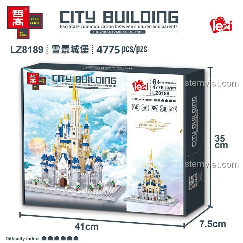 Chào mừng bạn đến với thế giới diệu kỳ của Lâu đài trong tuyết LZ8189, một bộ đồ chơi lắp ghép đỉnh cao từ thương hiệu LEZI, mang đến trải nghiệm xây dựng đầy mê hoặc cho các bé gái từ 6 tuổi trở lên. Với 4775 mảnh ghép chi tiết, bộ sản phẩm này không chỉ là một món đồ chơi mà còn là một tác phẩm nghệ thuật, tái hiện chân thực vẻ đẹp lộng lẫy của một lâu đài cổ tích giữa khung cảnh tuyết trắng.