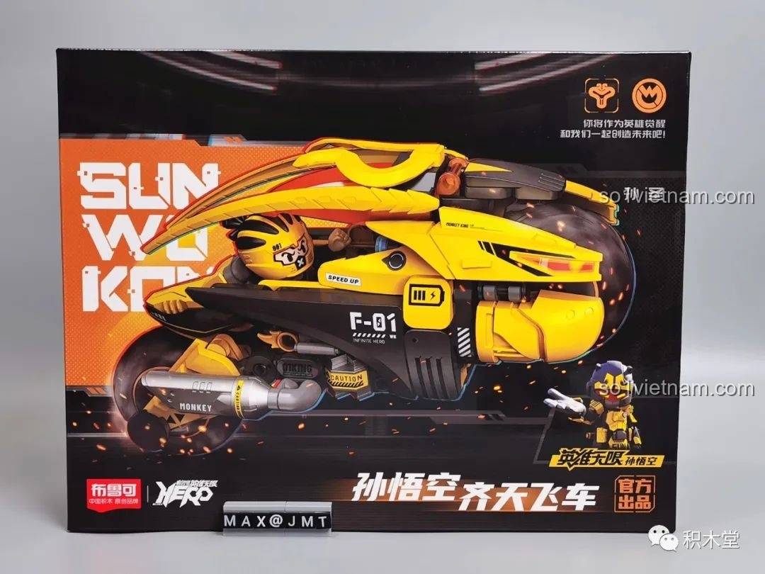 Đây là phương tiện đầu tiên xuất hiện trong dòng “Anh Hùng Vô Hạn”. Hộp xe bao gồm 8 túi linh kiện và một cuốn hướng dẫn chi tiết. Ngay khi mở hướng dẫn ra, mình đã bị ấn tượng bởi những hình ảnh minh họa cực kỳ đẹp mắt. Cuốn hướng dẫn có cả chú thích tiếng Việt, rất tiện lợi. Đặc biệt, trên hướng dẫn còn giới thiệu 3 tạo hình của Tôn Ngộ Không trong “Anh Hùng Vô Hạn”: Tề Thiên Phi Xa, Tôn Ngộ Không Chiến đấu và Tôn Ngộ Không Pháp tướng. Hộp