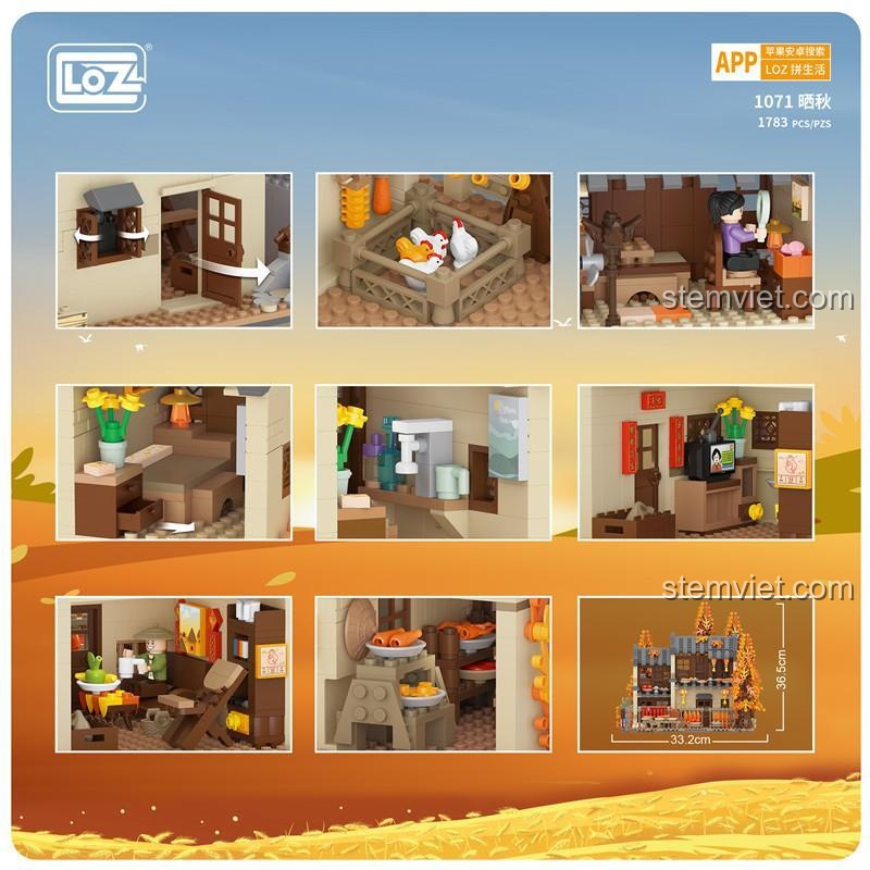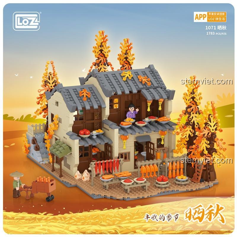 Sản phẩm này lấy cảm hứng từ ‘Sái Thu’ (晒秋) – một phong tục dân gian tuyệt đẹp của người nông dân Trung Quốc. ‘Sái Thu’ có nghĩa là ‘phơi mùa thu’, là hoạt động phơi khô nông sản như ớt đỏ, ngô vàng, bí ngô… trên mái nhà, ngoài sân, tạo nên một bức tranh rực rỡ sắc màu. Phong tục này không chỉ thể hiện sự trù phú, ấm no mà còn là niềm tự hào về một mùa màng bội thu. Với đồ chơi mô hình LOZ 1071, bé sẽ được tự tay tái hiện lại nét văn hóa đặc sắc này, hiểu thêm về cuộc sống và lao động, và cảm nhận được niềm vui của sự đủ đầy.