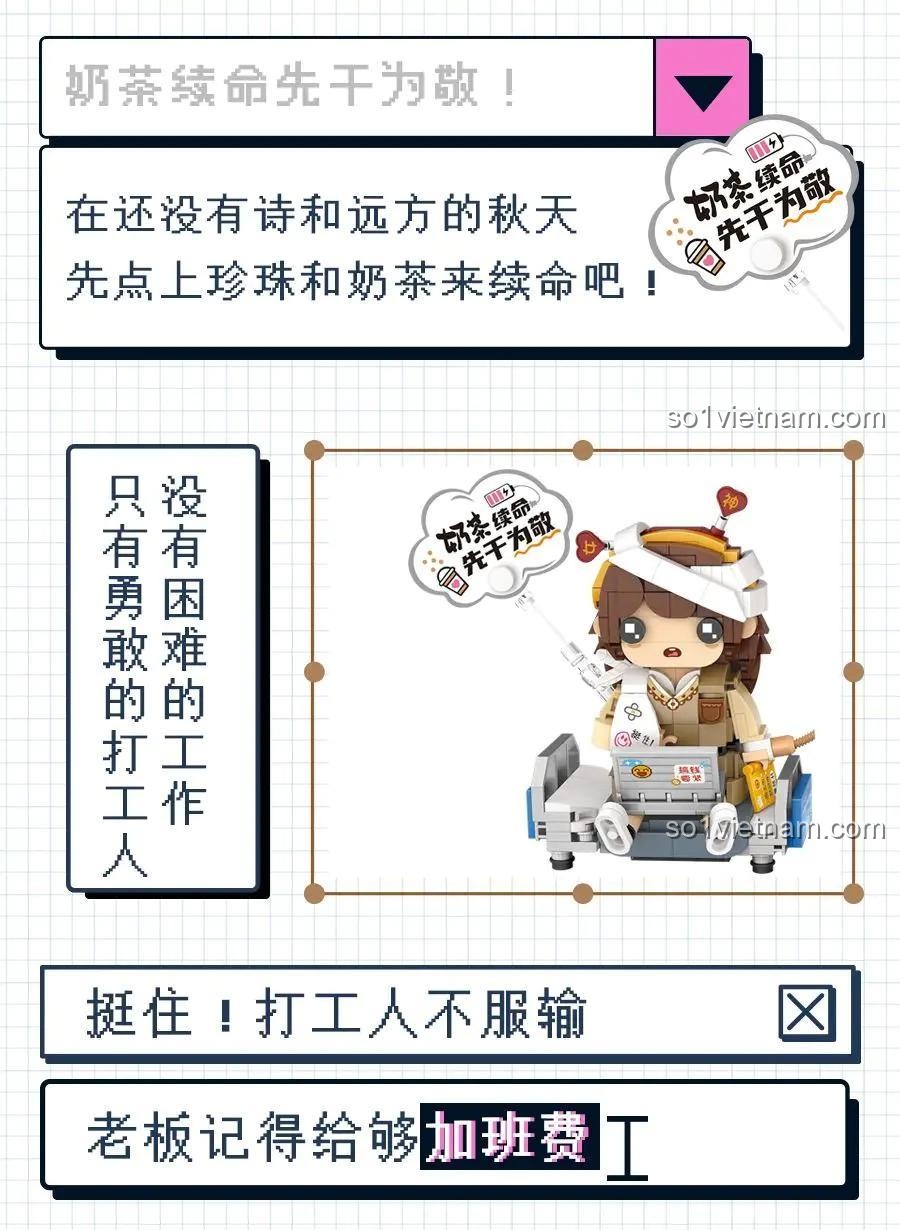 - Tên sản phẩm: 潮流打工人:奶茶续命 (Công nhân vui vẻ: Trà sữa tiếp sức)