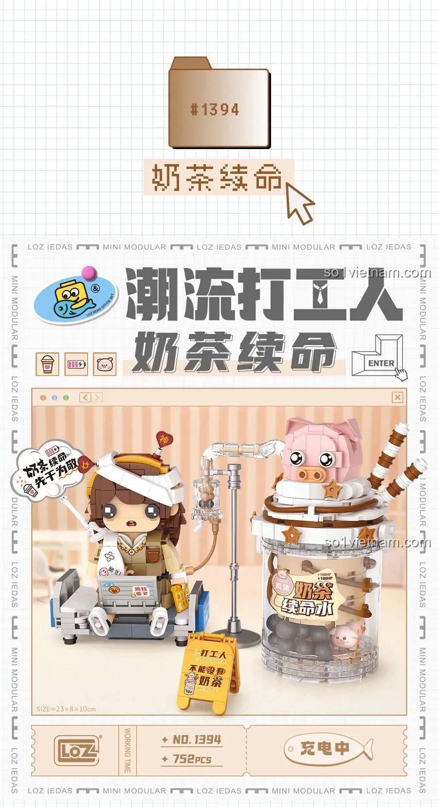 Bộ lắp ghép LOZ 1394 “潮流打工人:奶茶续命” (Công nhân vui vẻ: Trà sữa tiếp sức) là một sản phẩm nổi bật từ thương hiệu LOZ, nổi tiếng với các bộ lắp ghép mini độc đáo và sáng tạo.