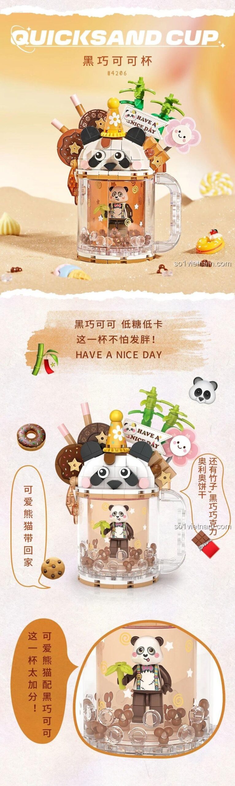 LOZ 4206: Bộ Lắp Ghép Cốc Cát Chảy Gấu Trúc Sô Cô La (297 Mảnh Ghép) – Ngọt Ngào Tan Chảy