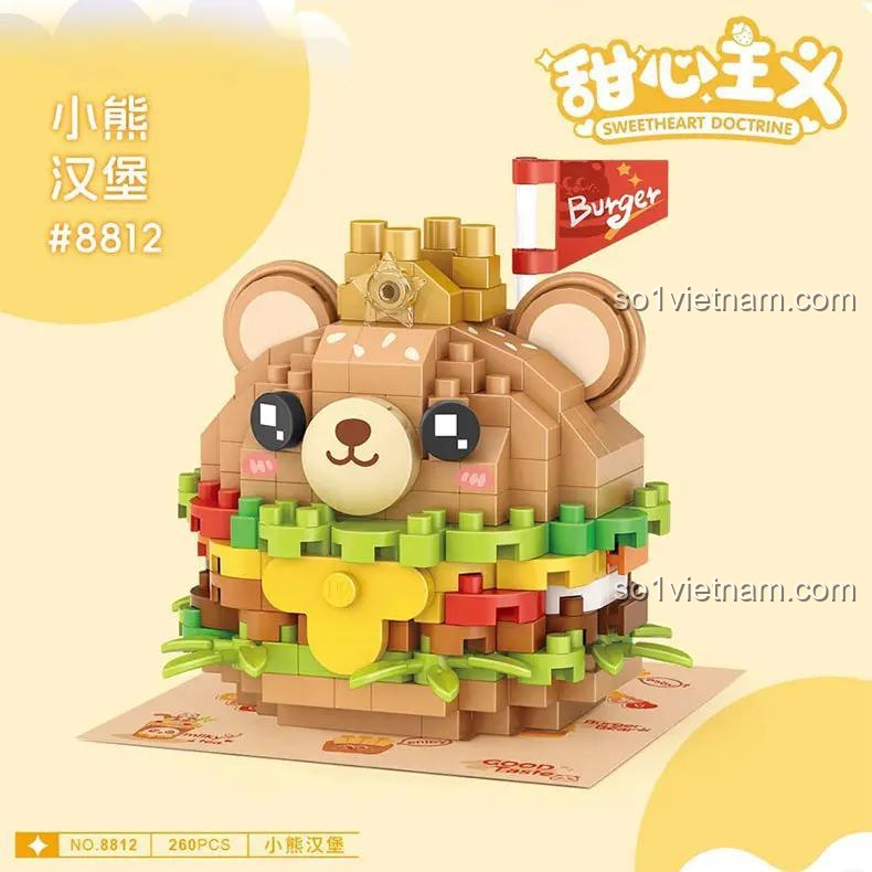 🐻🍔 LOZ 8812 Gấu Bông Burger: Bộ Lắp Ráp 260 Mảnh – Ngọt Ngào Dễ Thương 🍔🐻