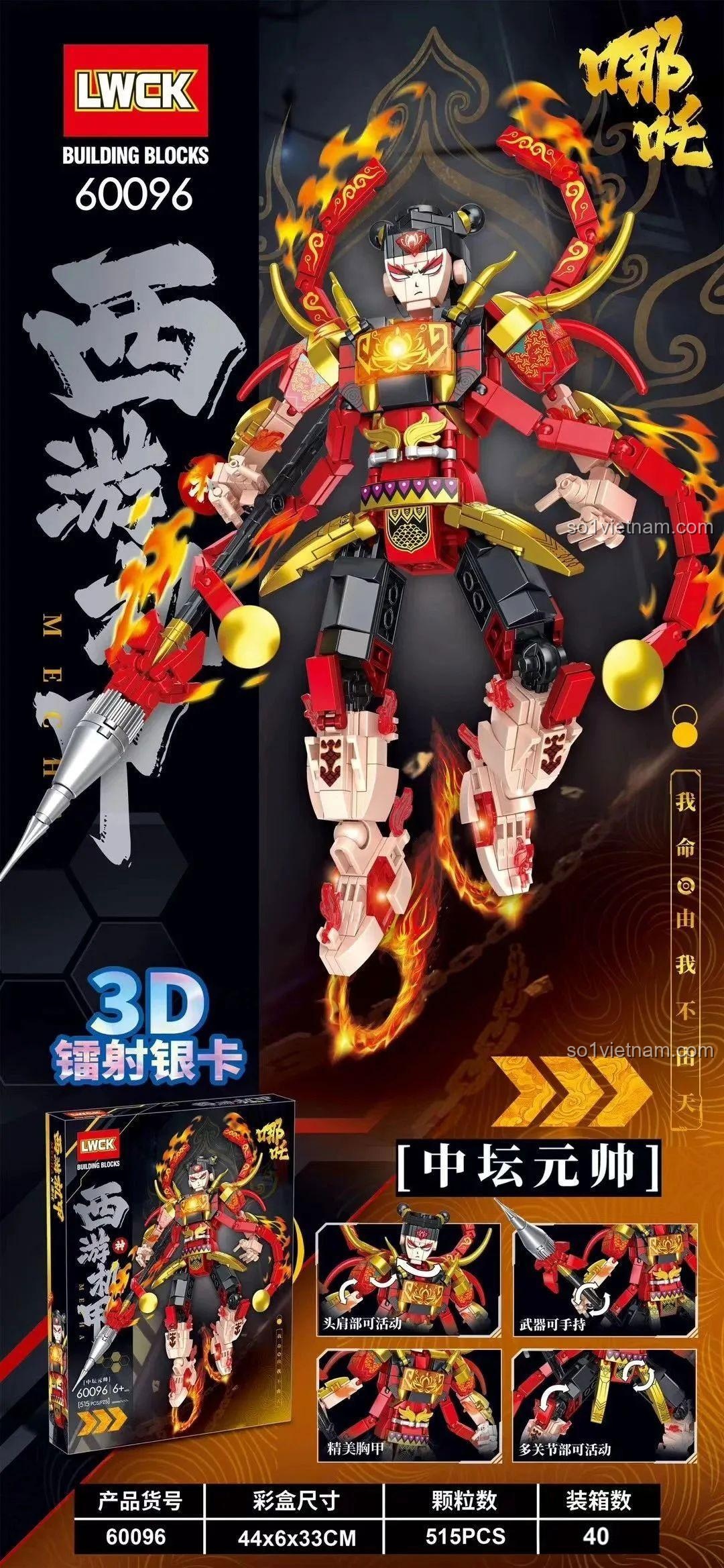 Sức hấp dẫn của **Robot Tây Du Ký Na Tra 60096** không chỉ nằm ở vẻ ngoài mà còn ở trải nghiệm lắp ráp và vui chơi mà nó mang lại. Quá trình mày mò, tìm kiếm và lắp ghép 515 mảnh ghép theo sách hướng dẫn 3D chi tiết là một thử thách thú vị, giúp bé rèn luyện sự tập trung và tính kiên nhẫn. Khi hoàn thành, cảm giác chinh phục và tự hào của bé sẽ là phần thưởng lớn nhất.
