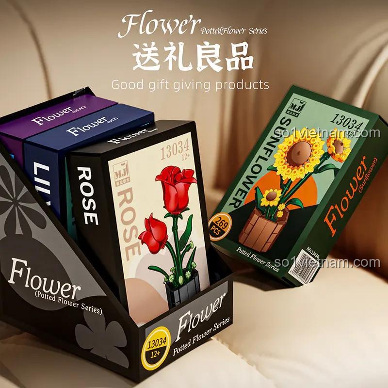 Mỗi hộp MeiJi 13034 là một mẫu hoa độc lập. Tuy nhiên, bạn hoàn toàn có thể sáng tạo bằng cách kết hợp các mảnh ghép từ các hộp khác nhau để tạo ra những chậu hoa độc đáo theo ý thích.