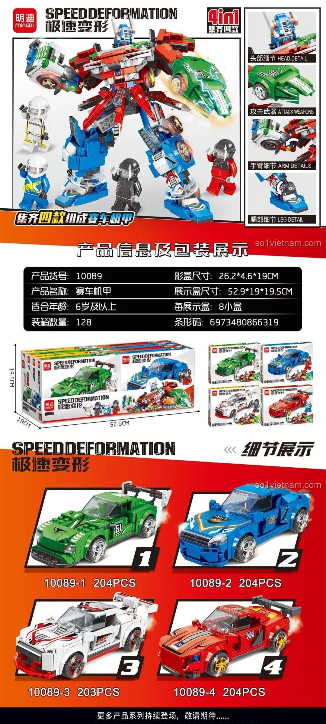 🌟 MingDi 10089 Speed Deformation: Biến Hình Tốc Độ – Robot Xe Đua 4 Mẫu Lắp Ráp! 🌟