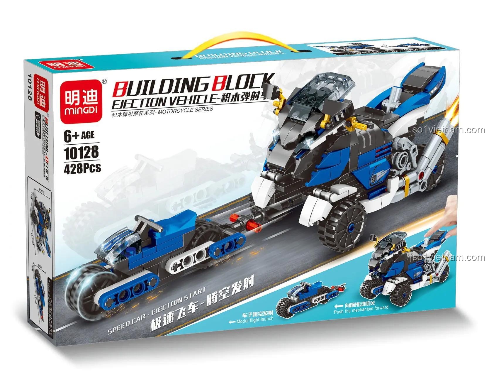 Điểm nhấn của bộ lắp ghép Xe Đạp Tên Lửa Tốc Độ Cao MingDi 10128 là chức năng phóng tên lửa, mang đến trải nghiệm hành động kịch tính và đầy phấn khích cho bé.