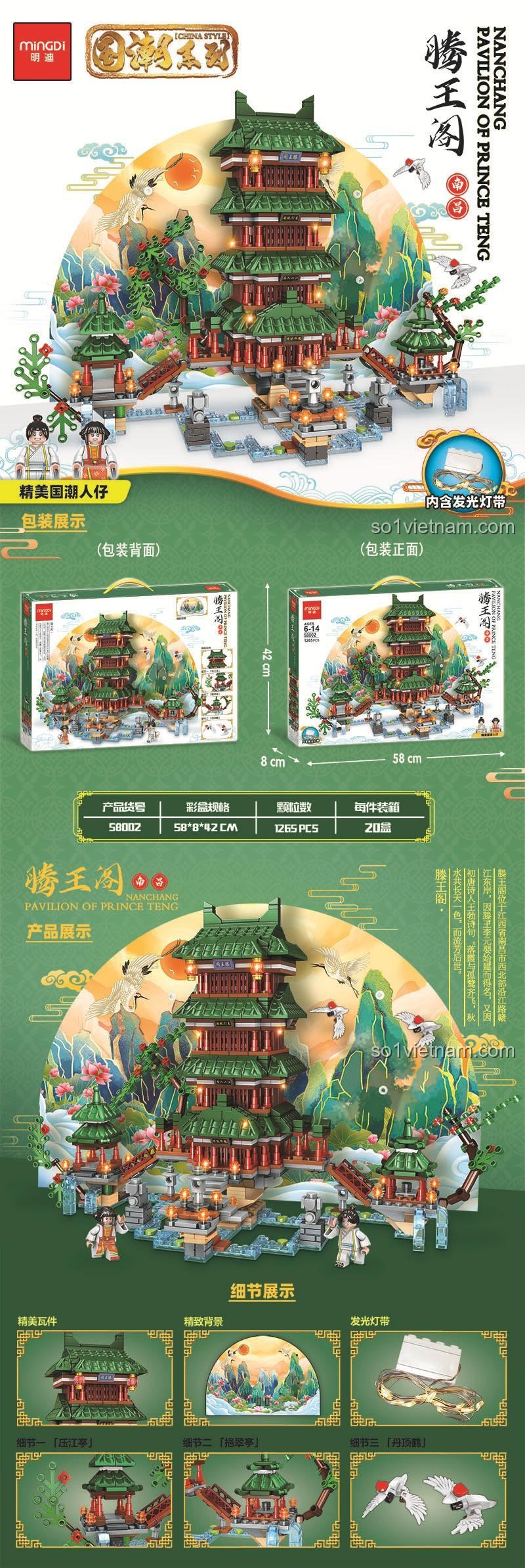 Mingdi 58002: Bộ lắp ghép Đằng Vương Các (1265 Mảnh ghép) – Thiên Cổ Danh Lâu