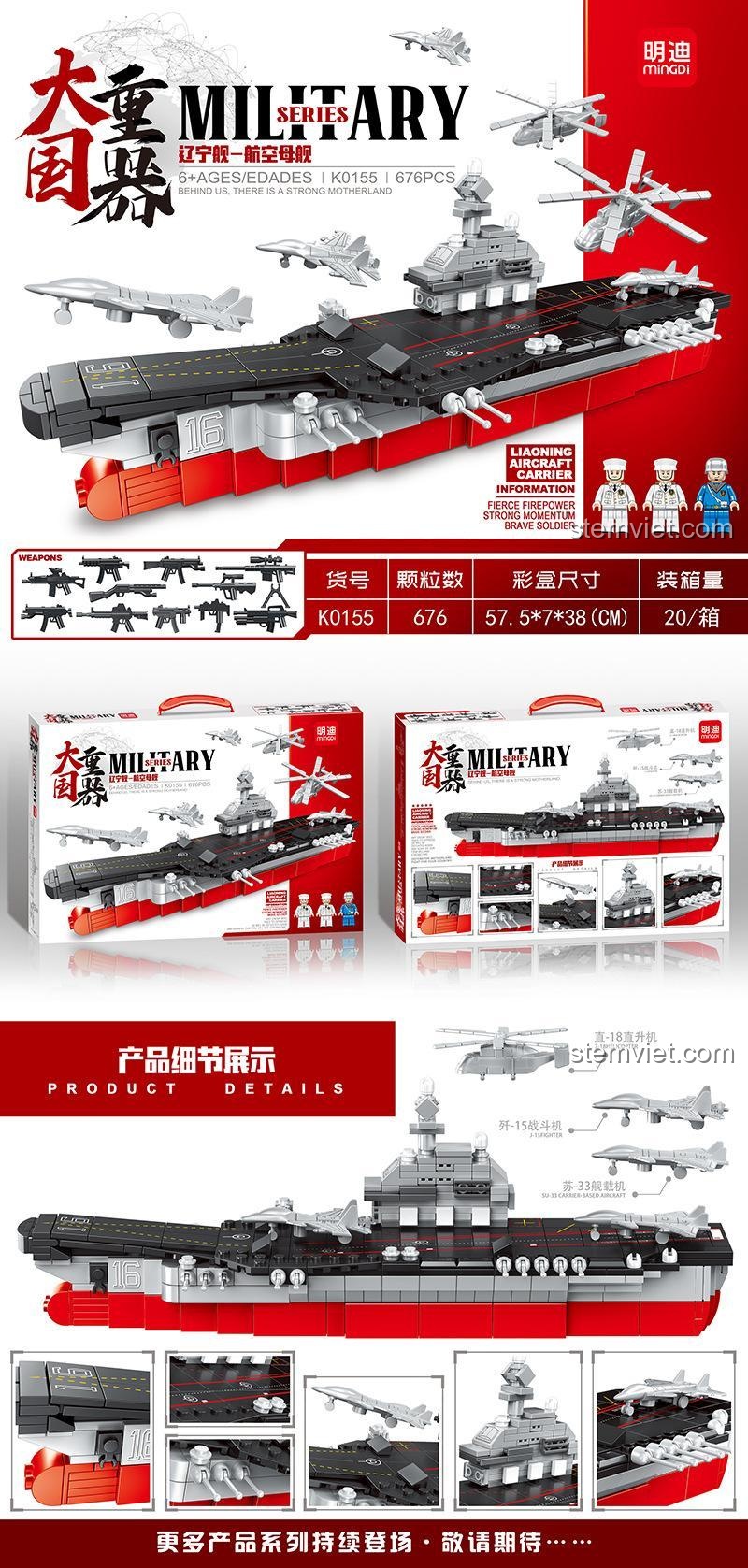 Chào mừng các Bố bé trai 6 tuổi đến với thế giới quân sự đầy hùng vĩ! Bạn đang tìm kiếm một món đồ chơi không chỉ giải trí mà còn khơi dậy niềm đam mê khám phá và tư duy chiến lược cho con trai mình? Bộ lắp ráp Mingdi Leibao K0155 Tàu sân bay Liêu Ninh chính là lựa chọn hoàn hảo! Đây không chỉ là một bộ đồ chơi mô hình thông thường, mà còn là một kiệt tác thu nhỏ tái hiện chân thực một trong những biểu tượng sức mạnh hải quân hiện đại. Hãy cùng con trai bạn dấn thân vào cuộc phiêu lưu xây dựng và khám phá lịch sử đầy thú vị của hàng không mẫu hạm Liêu Ninh!