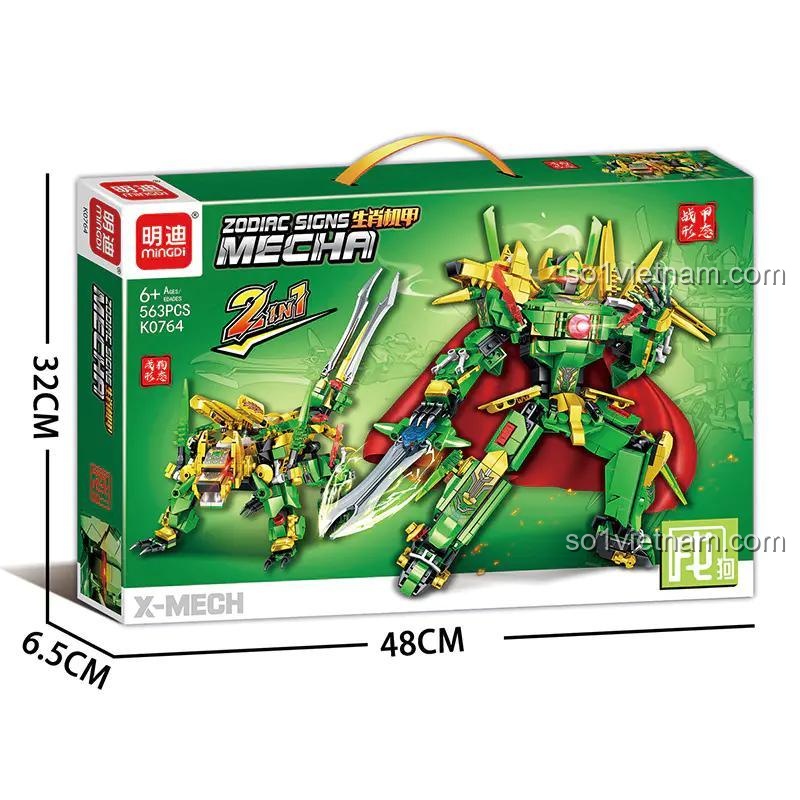 Bộ lắp ghép **Mingi K0764 Zodiac Signs Mecha: Mậu Tuất** nổi bật với thiết kế 2 trong 1 đầy sáng tạo. Bé có thể tự tay lắp ráp để tạo nên hai phiên bản robot chiến đấu ấn tượng: