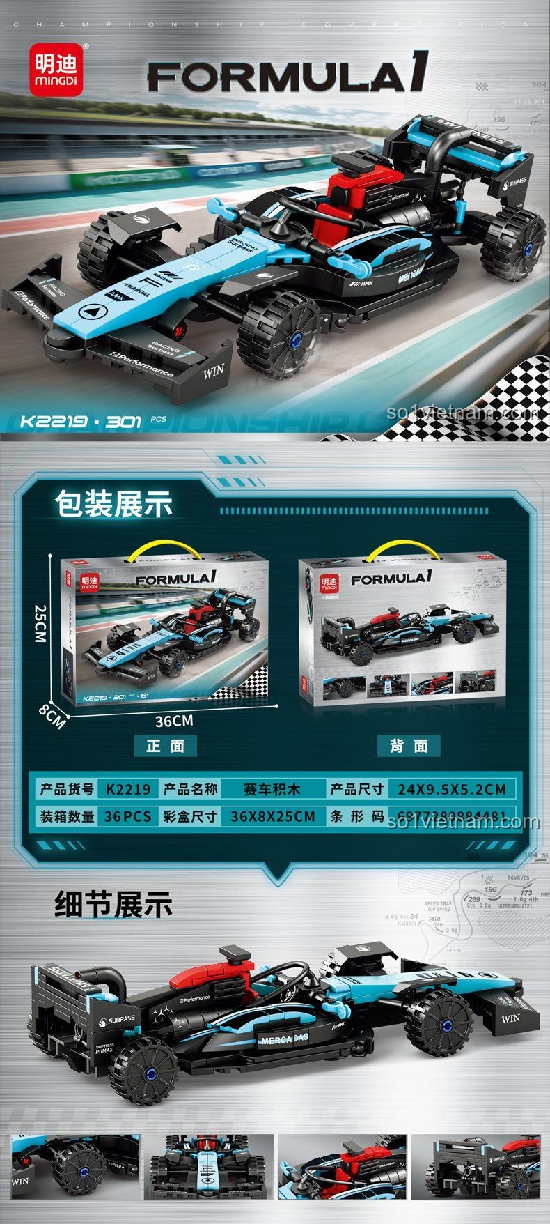 Mingi K2219: Bộ Lắp Ghép Xe Đua F1 Tốc Độ – 301 Mảnh Ghép