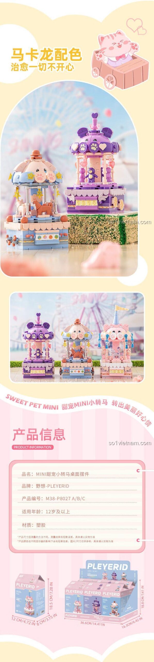 💖 Khám Phá Thế Giới Ngọt Ngào Cùng MINI Ngựa Quay Ngọt Ngào Pleyerid M38-P8027! 💖