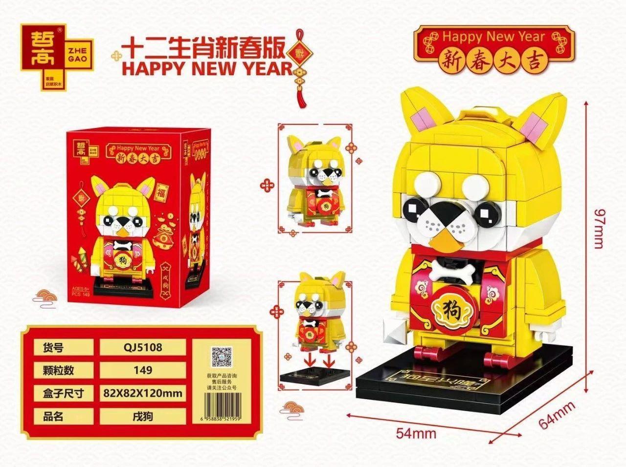 Sản phẩm ZHEGAO QJ5108 nổi bật với thiết kế chú chó theo phong cách BrickHeadz, mang ý nghĩa may mắn trong dịp Tết. Các mảnh ghép có độ khít cao và chất liệu nhựa ABS an toàn.