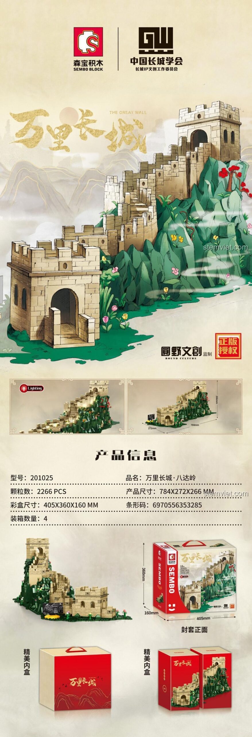 Bạn có bao giờ mơ ước được đặt chân đến Vạn Lý Trường Thành, một trong những kỳ quan vĩ đại nhất của nhân loại, một công trình phòng thủ quân sự kéo dài hàng ngàn dặm, minh chứng cho trí tuệ và sự kiên trì phi thường của con người? Giờ đây, không cần phải đi đâu xa, bạn có thể tự tay tái hiện một phần lịch sử huy hoàng đó ngay tại không gian sống của mình. Bộ lắp ghép SEMBO BLOCK 201025 Vạn Lý Trường Thành – Bát Đạt Lĩnh sẽ đưa bạn vào một cuộc hành trình sáng tạo đầy cảm hứng. Sản phẩm này không chỉ là một món đồ chơi, mà còn là một bài học lịch sử sống động, tái hiện lại đoạn Bát Đạt Lĩnh – phần được bảo tồn tốt nhất và hùng vĩ nhất, được xây dựng từ thời nhà Minh. Đây là cơ hội để những người trưởng thành, những thanh niên đam mê khám phá, tạm gác lại những bộn bề của cuộc sống để đắm mình vào thế giới của sự tập trung, kiên nhẫn và sáng tạo, để rồi tự hào chiêm ngưỡng thành quả của mình – một biểu tượng của sự bất diệt và hùng tráng.