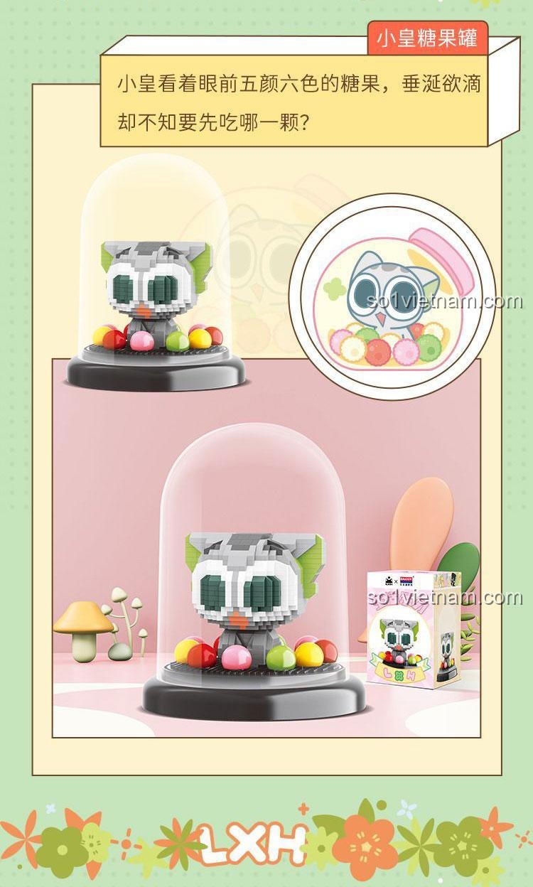 Mỗi chi tiết của bộ xếp hình Nhân vật Luo Xiao Hei đều được chăm chút tỉ mỉ, thể hiện sự tinh xảo trong thiết kế. Với màu sắc chủ đạo là trắng, xám, đen kết hợp cùng sắc đỏ, vàng, cam, tím rực rỡ của những viên kẹo, mô hình này không chỉ bắt mắt mà còn kích thích thị giác của bé. Dù không có kích thước mô hình cụ thể, nhưng qua hình ảnh, bạn có thể thấy rõ sự cân đối và hài hòa, tạo nên một mô hình trưng bày độc đáo. Các khối mini block nhỏ gọn, giúp bé rèn luyện sự khéo léo và tập trung khi lắp ráp, biến những mảnh ghép rời rạc thành một tác phẩm nghệ thuật hoàn chỉnh.